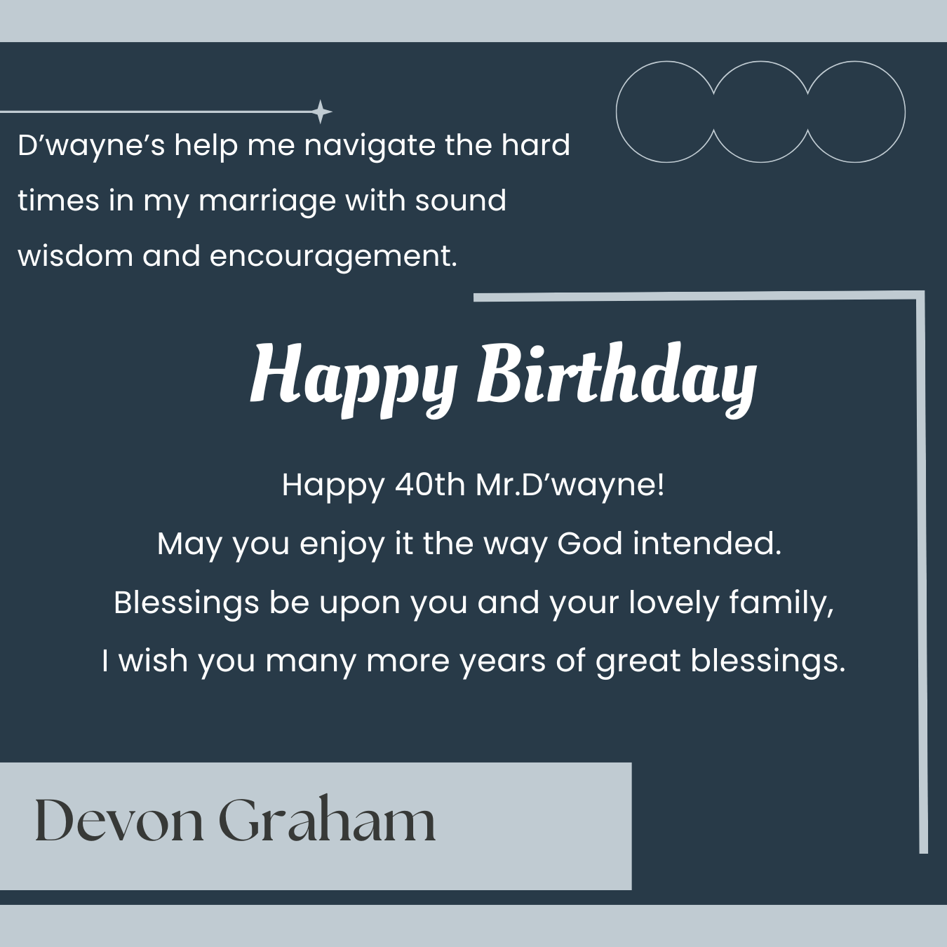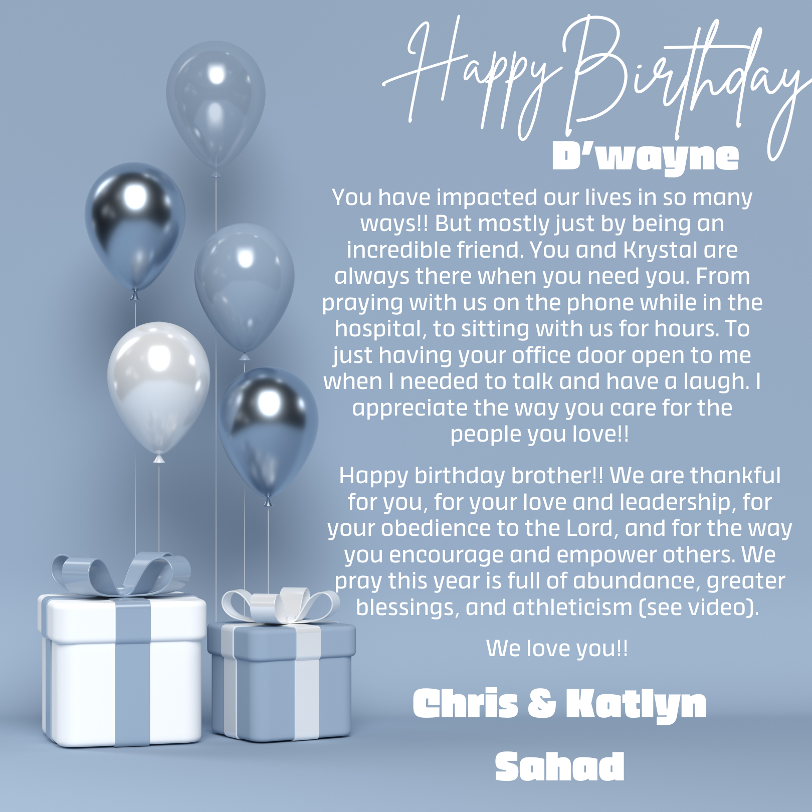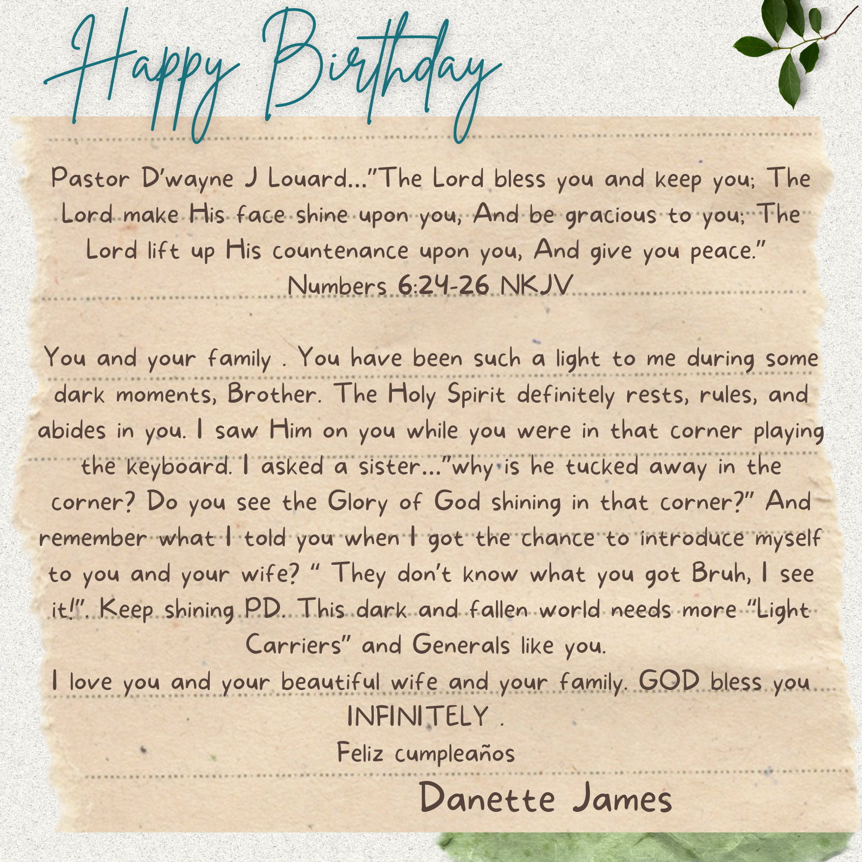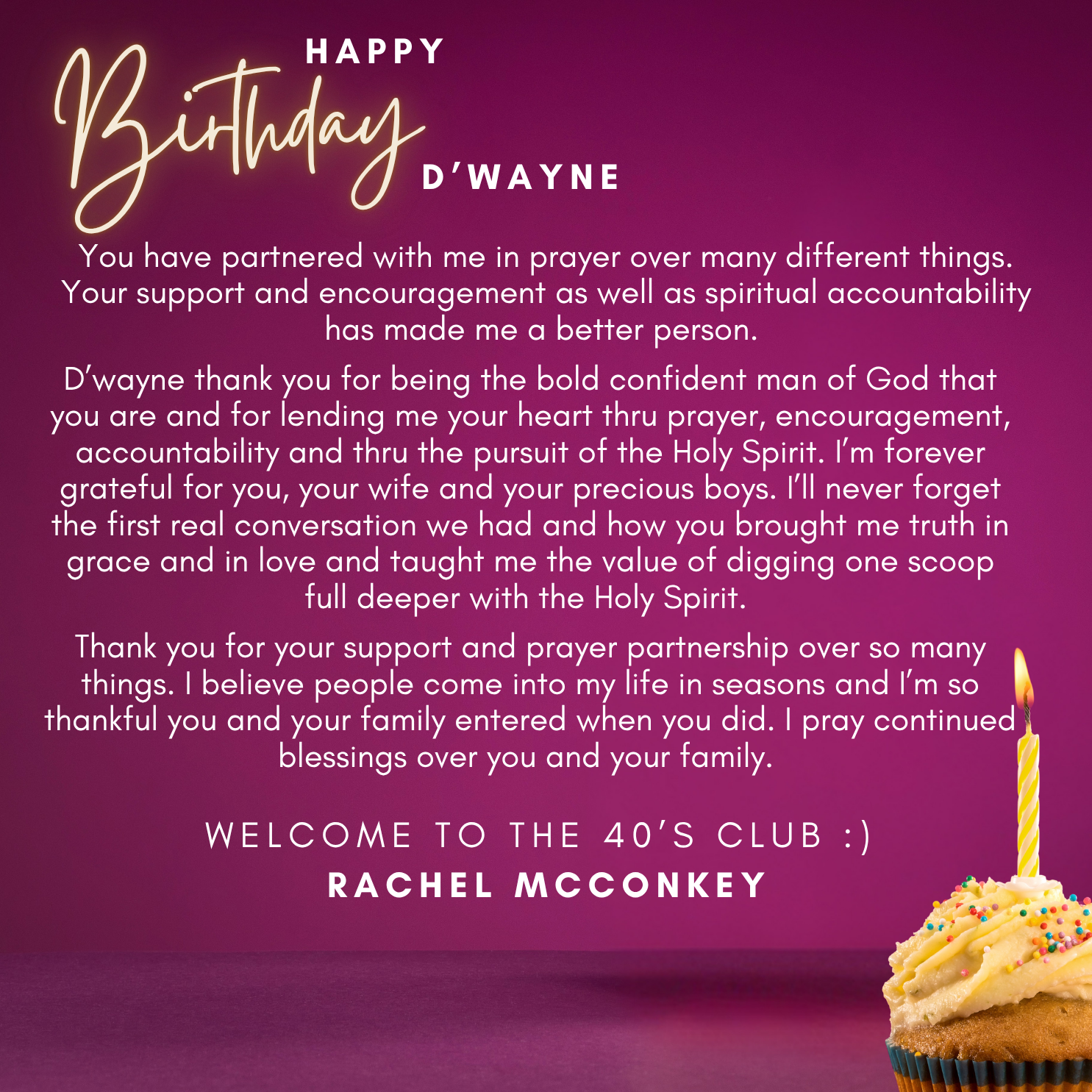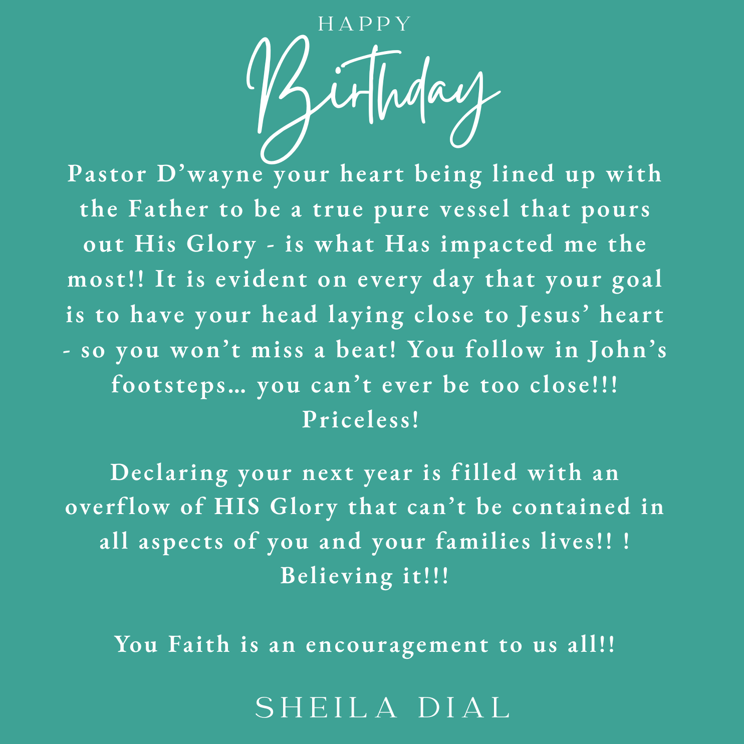 D’wayne, you’ve spent your life pouring out for others. This page is a small glimpse of how much you’re loved in return. Today we celebrate not just your birthday, but the man of God, husband, father, and friend you are.