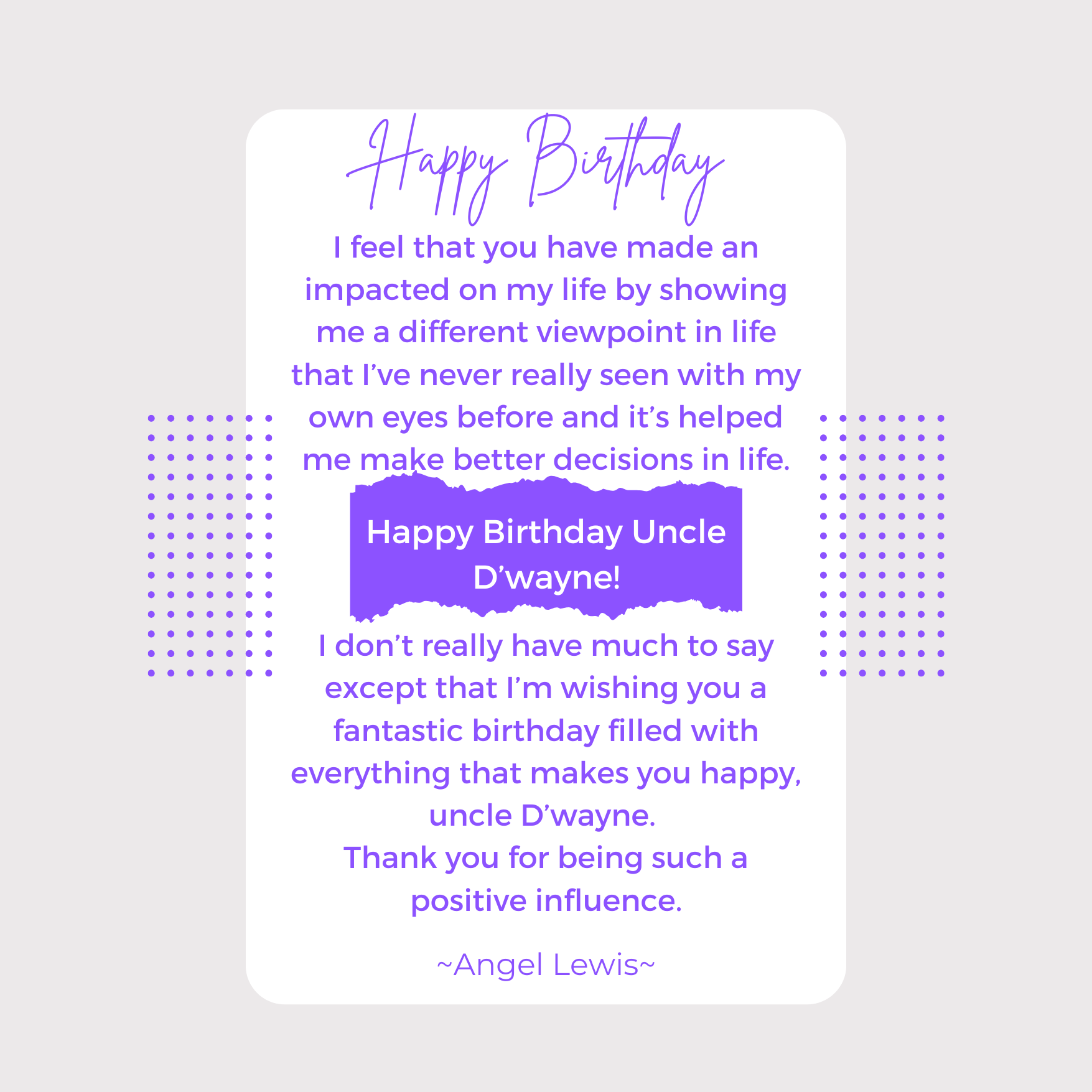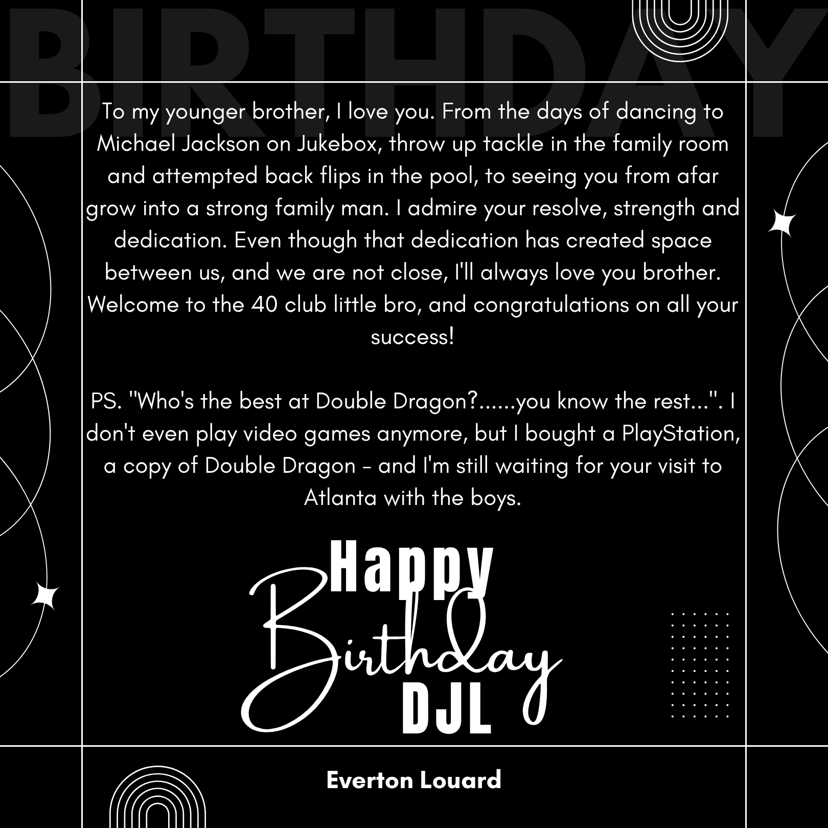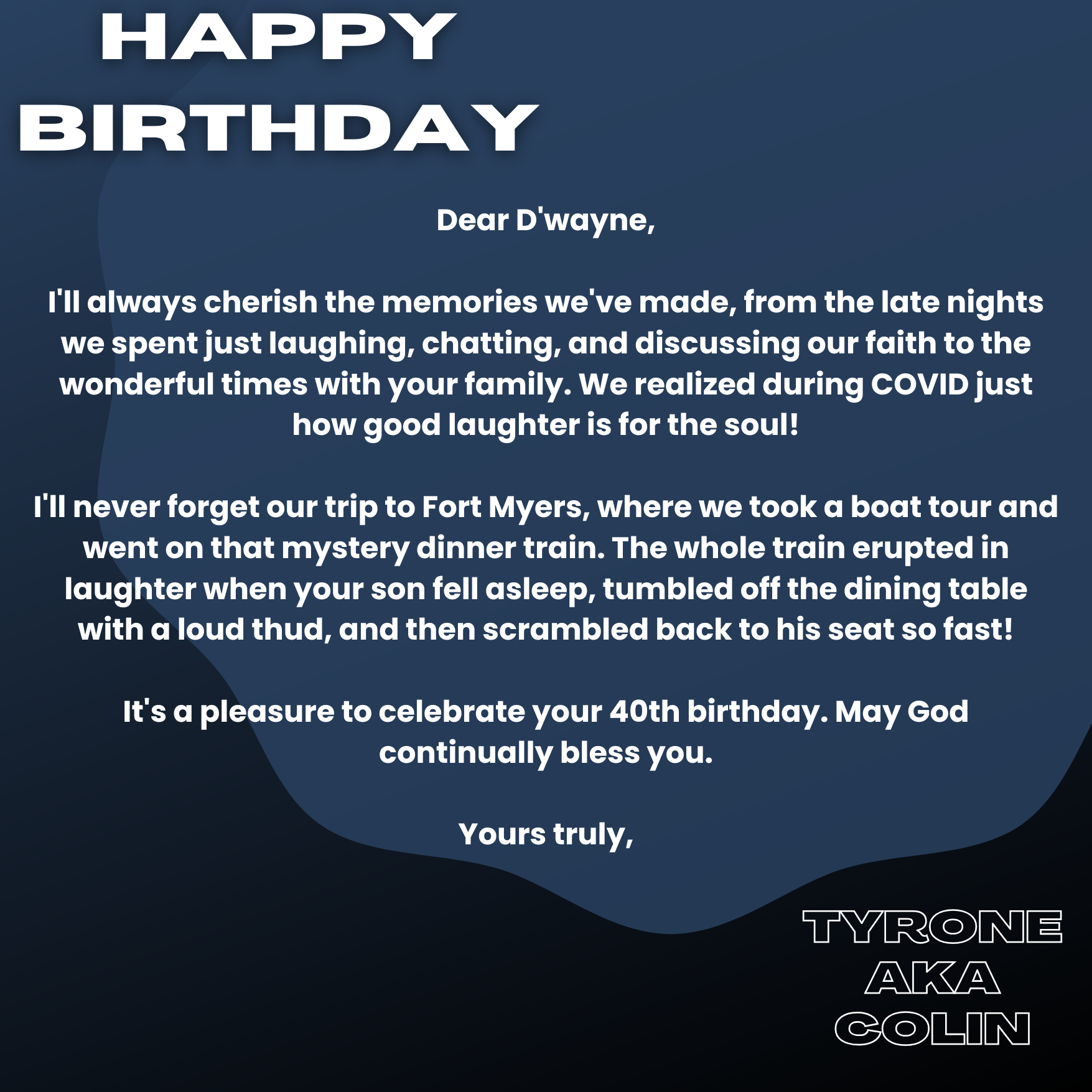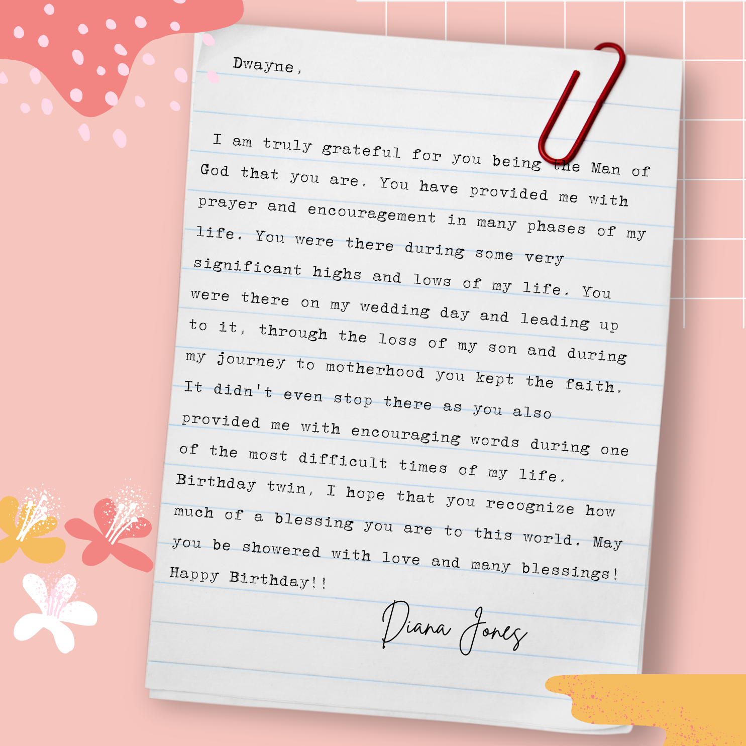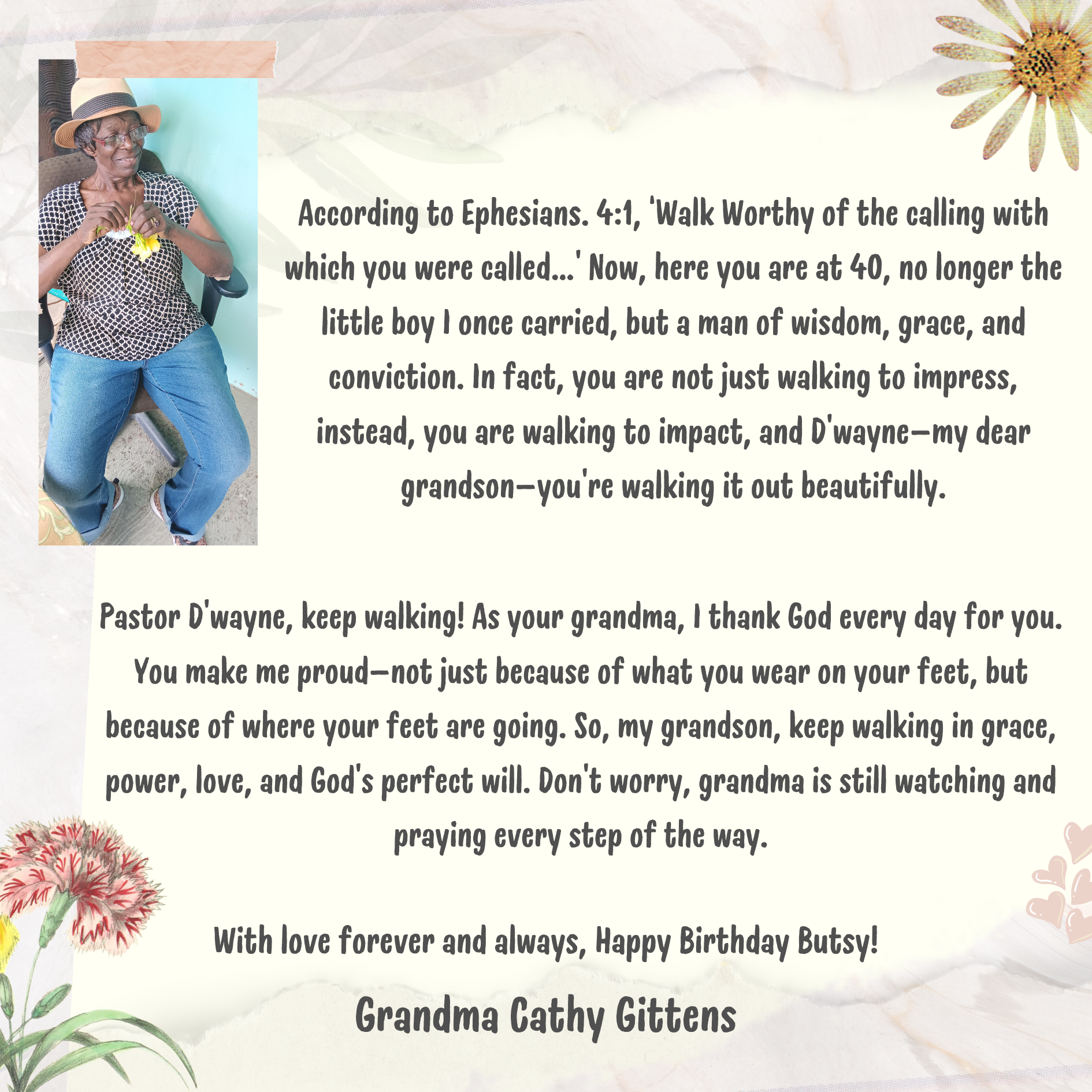 D’wayne, you’ve spent your life pouring out for others. This page is a small glimpse of how much you’re loved in return. Today we celebrate not just your birthday, but the man of God, husband, father, and friend you are.