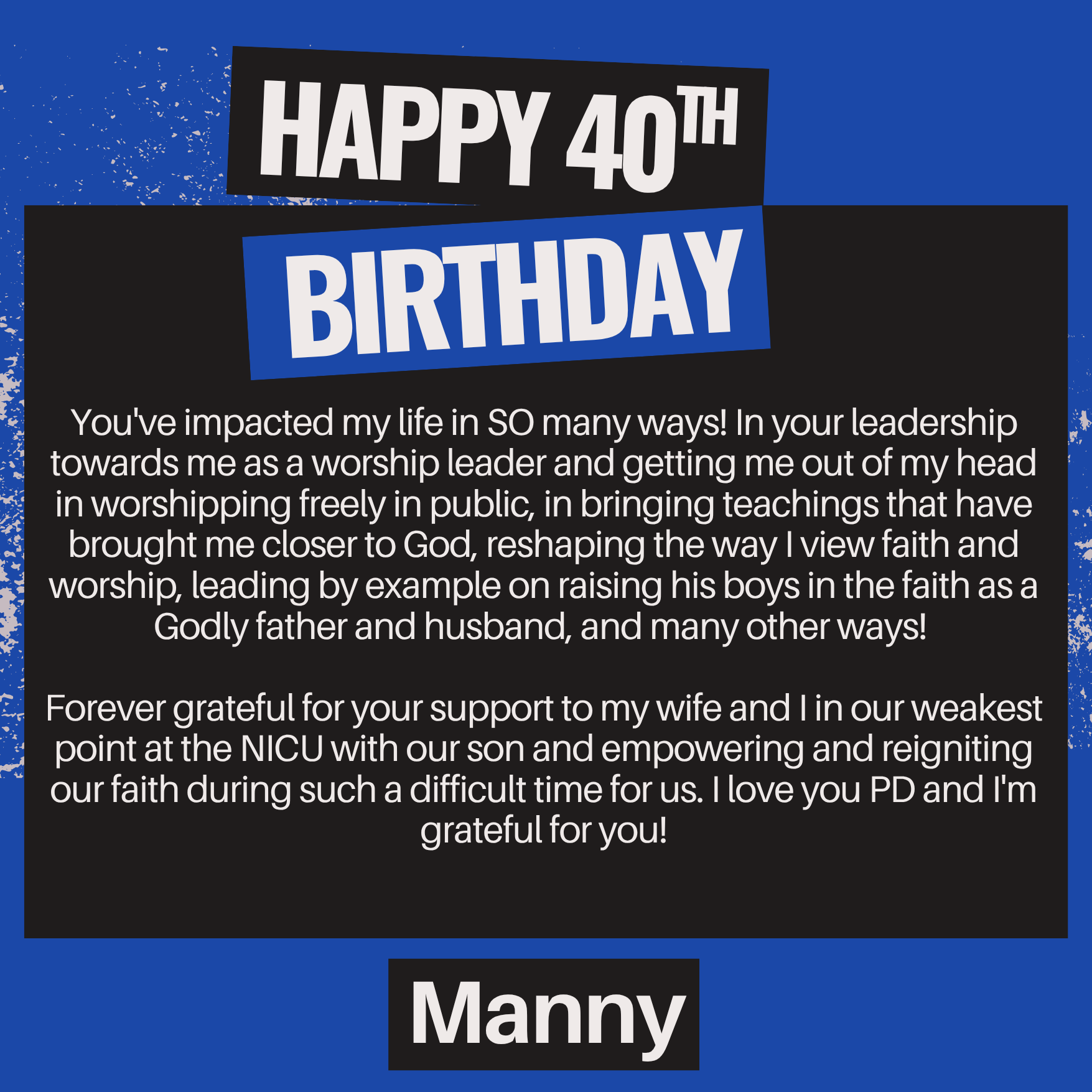 Every word, every photo, every video on this page is a testimony of your impact and the love we all have for you. May this remind you how deeply you are honored and valued—not just today, but every day. Here’s to the next 40 years of faith, fire, and fulfillment.